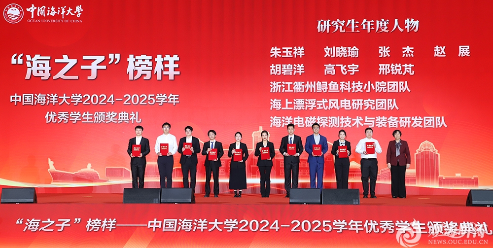 颁奖典礼分为“勤学篇”“笃行篇”“行远篇”三个篇章,通过颁奖表彰“海之子”榜样典型,引导广大学子弘扬“勇立潮头,谋海济国”的海大精神,怀爱国之心、立报国之志、增强国之能,以榜样为镜,向卓越进发,为强国建设、民族复兴伟业贡献“海之子”的磅礴力量。