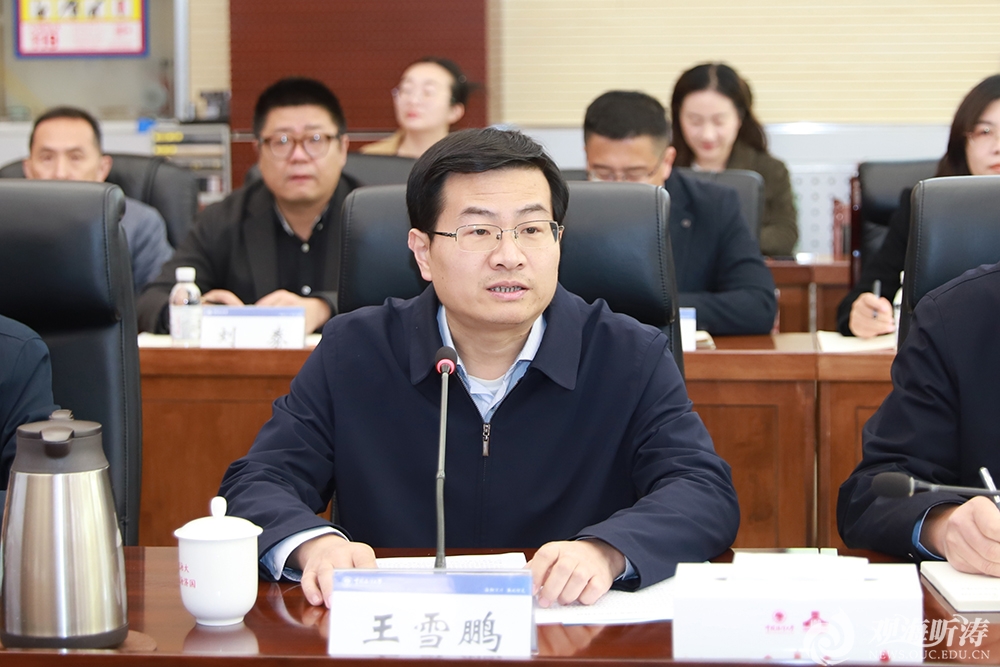 王雪鹏介绍了学校毕业生就业工作总体情况,分析了当前工作面临的机遇挑战,围绕毕业生就业“扩容提质”行动实施,从促适配、扩增量、提质量、优服务、强育人、建机制等方面具体部署了下一阶段重点工作。