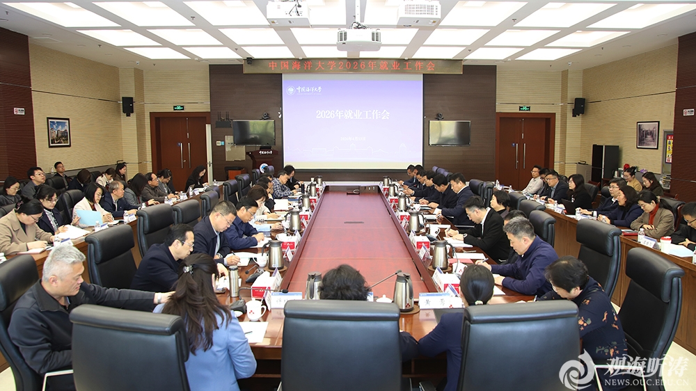 本站讯 4月13日,中国海洋大学召开2026年就业工作会,深入学习贯彻习近平总书记关于高校毕业生就业工作的重要指示批示精神,贯彻落实全国高校毕业生等青年就业创业工作视频会议精神和教育部、山东省部署要求,总结工作、交流经验、分析形势,对高质量做好就业工作作出部署要求。党委书记李明讲话,党委常务副书记张静,副校长王厚杰、林旭升,党委副书记、纪委书记俞黎阳出席会议,副校长王雪鹏主持会议。