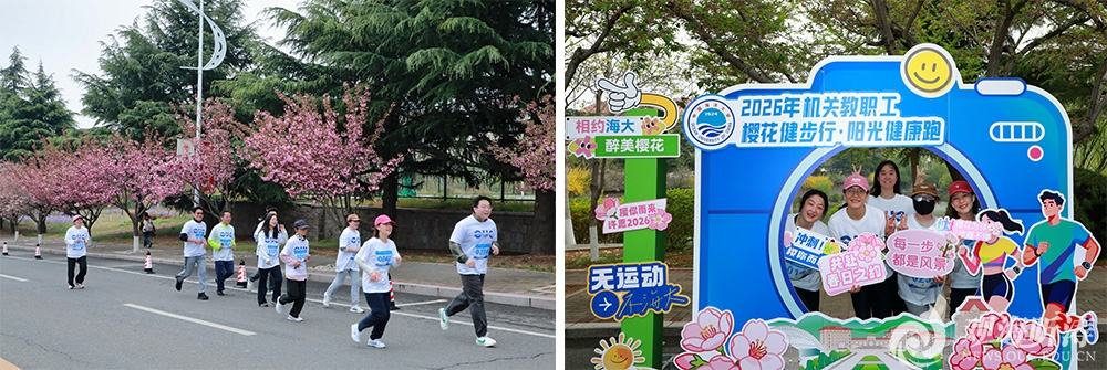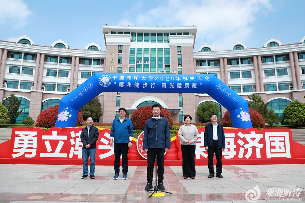 本站讯 四月的海大园,樱花烂漫,生机盎然。4月17日,机关教职工2026年“樱花健步行 阳光健康跑”活动在崂山校区启动,四校区同步开展。党委书记李明参加活动并致辞,党委常务副书记张静为活动开始鸣枪发令,党委常委、副校长王厚杰、王雪鹏,党委副书记、纪委书记俞黎阳参加活动。