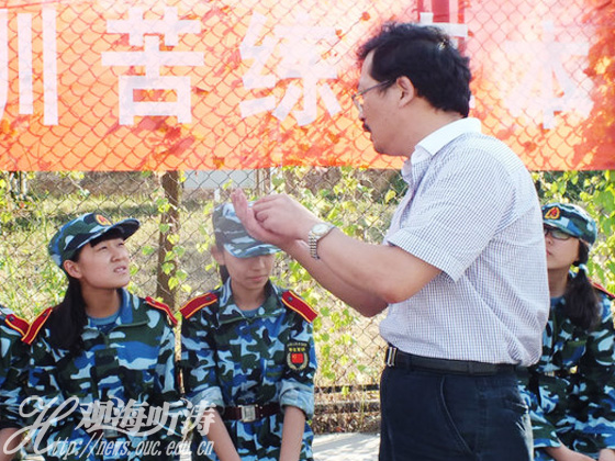 本站讯 9月4日下午,外国语学院院领导对正在军训的外国语学院2012级新生进行亲切慰问。外院副院长赵德玉,党委副书记兼副院长陈文收,团委书记孟凡等均参加了此活动。