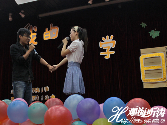 本站讯 9月20日晚,月光下的海大已是一片宁静,鱼山校区逸夫馆多功能厅中却是一片愉悦与热闹。由水产学院团委主办、学生会承办的“我的大学日记”水产迎新晚会如期举行。