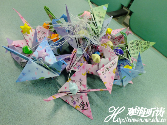 女生部同学事先准备好纸鹤,同学们在纸鹤上写上想对教官说的话,有敬意、有祝福,有我们的理想与憧憬......