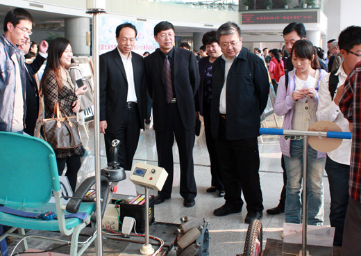 与会领导及师生参观中国海洋大学大学生优秀创新创业成果展