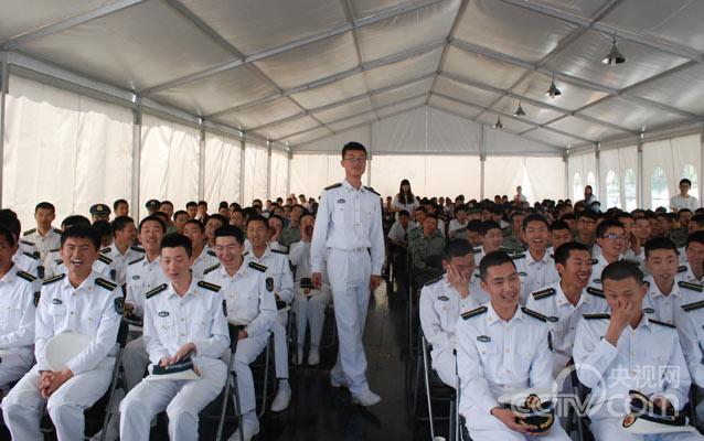 排练期间,每天紧凑的行程从来没有影响到国防生的积极性,虽然午饭的时候都会累得趴在餐桌上睡着,虽然候场一站就是一个多小时,但是海大国防生不叫苦不叫累,只为在舞台上的三分半钟展示最好的国防生面貌。相信在5月4日的晚会上,海大国防生的节目,一定会打动全国观众。