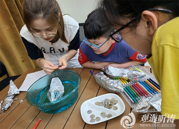 海洋课程基于学生们的认知基础与学习兴趣,开展了四部分内容的教学,分别是:海洋知识科普、贝壳梦幻世界、开船啦、海洋科技知多少。在老师的带领下,学生们“遨游”在海洋的知识里,认识海洋、海浪的形成,感受白蝶贝、珍珠贝等众多贝类的多姿多彩。课堂还结合STEAM的教育理念,孩子们利用各种各样的贝壳动手制作精美的贝壳画,然后以小组合作的形式搭建锡纸船,比比哪个小组的船不漏水,承重最多。在娱乐中学习,在学习中娱乐,通过这个过程孩子们不仅学习了知识,体验海洋科研的奥秘,更培养了他们的创造能力、实践能力与沟通合作能力;课程结束后,不少学生围在老师周围询问有没有海洋学校,表达了对海洋课程的喜爱。我国是海洋大国,海洋资源丰富,海洋强国建设需要深入贯彻和落实,希望通过该课程,让更多的青少年对海洋科研产生兴趣,同在生活中以实际行动珍惜海洋资源,保护海洋生物,爱护海洋环境,为建设海洋强国贡献自己的力量!