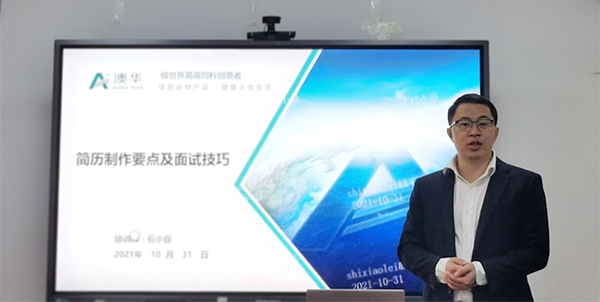 本站讯 10月31日下午,中国海洋大学水产学院第九届职场精英挑战赛在鱼山校区举行。澳华集团人力资源助理总监石小磊做《简历制作要点及面试技巧》特邀讲座并担当面试官。