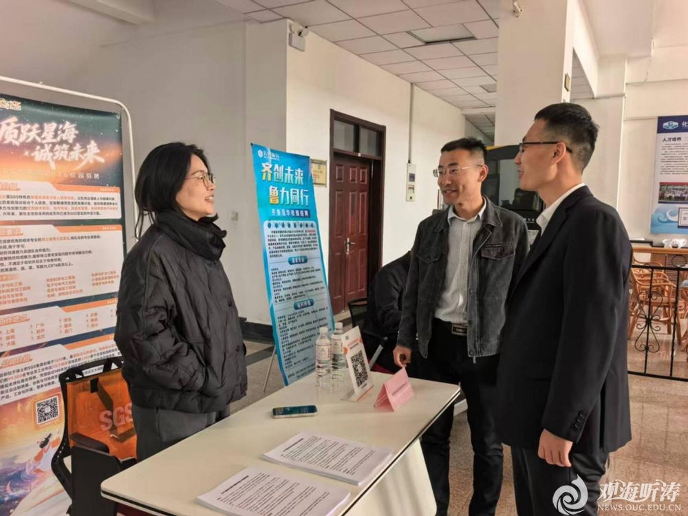 本站讯 3月31日,第三届“化”漾春天“职”等你来专场双选会暨中国海洋大学第二十届“鹏程校园”化工材料专场招聘会在化学楼一楼大厅举行。