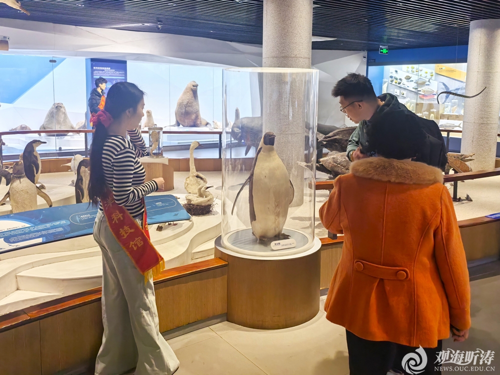 在青岛水族馆,鱼山科普志愿者协会志愿者们围绕翻车鲀、斑海豹等特色物种,借助标本与展区实景,用生动的语言细致讲解海洋生物的生活习性、生存现状与保护意义,耐心解答提问,累计服务游客近千人次。志愿者们充分展现水产学子风采,在实践中提升专业能力与社会责任感。