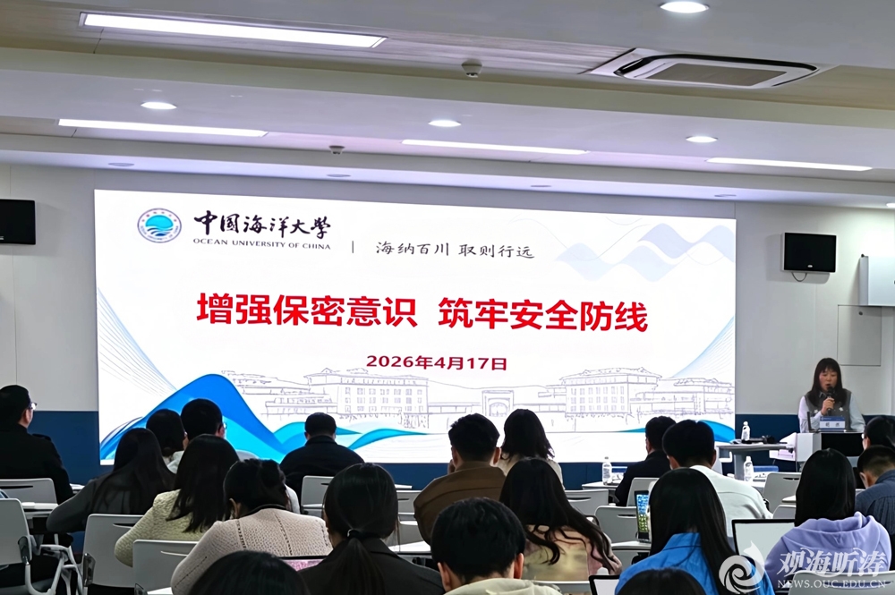 本站讯 4月17日,为进一步提升辅导员国家安全意识和实操处置能力,筑牢校园国家安全防线,切实应对日常工作中可能出现的各类国家安全相关风险,中国海洋大学2026年第二期“蓝梦学工研习坊”在崂山校区举办。本期研习坊特邀党委办公室、校长办公室机要与保密室主任胡燃作“增强保密意识、筑牢安全防线”专题报告。法学院团委书记李文慧主持活动。