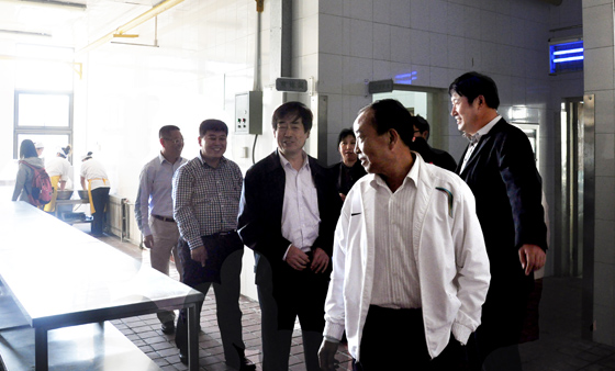 于宜法副校长(左三)参观学校食堂 本站讯 10月18日下午,学校
