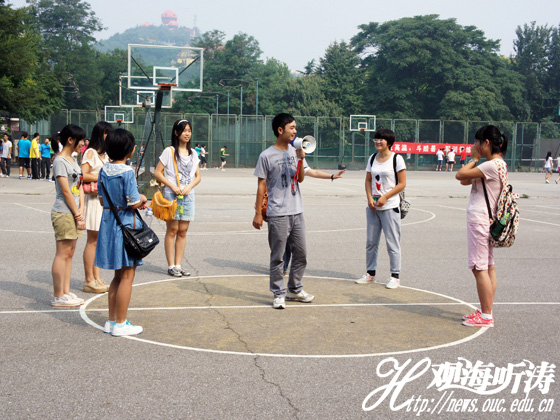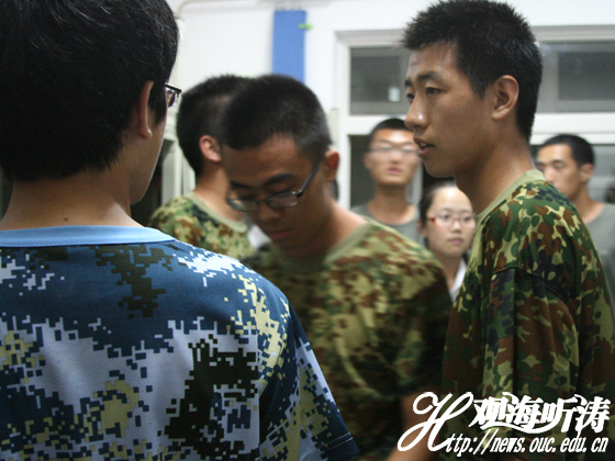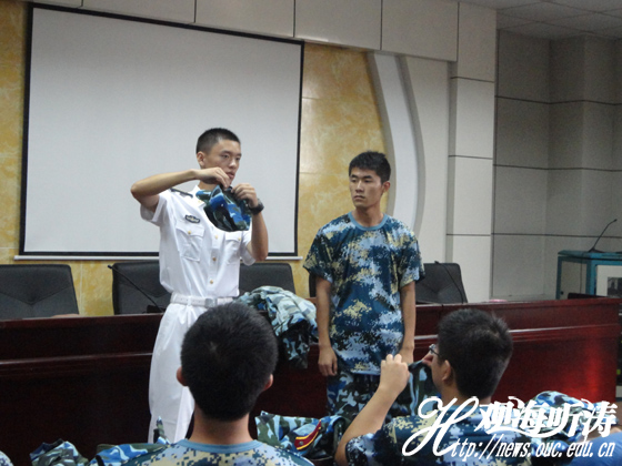 教官做示范 本站讯 8月31日下午,中国海洋大学医药学院教官与新