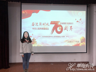 王婧潇做主题演讲 本站讯 10月15日,中国海洋大学环境科学与工程学院(以下简称“环科院”)举行“我与祖国共奋进——国旗下的演讲”特别主题团日活动。通过声情并茂的演讲,奏响礼赞新中国、奋进新时代的青春主旋律。本次活动由环科院研究会会长许增超主持,环科院部分共青团员参加了本次活动。 主讲人是2019级硕士研究生尹诗琪和2017级本科生王婧潇两位优秀学生代表,他们以“我与祖国共奋进”为主题进行了演讲。尹诗琪从10...