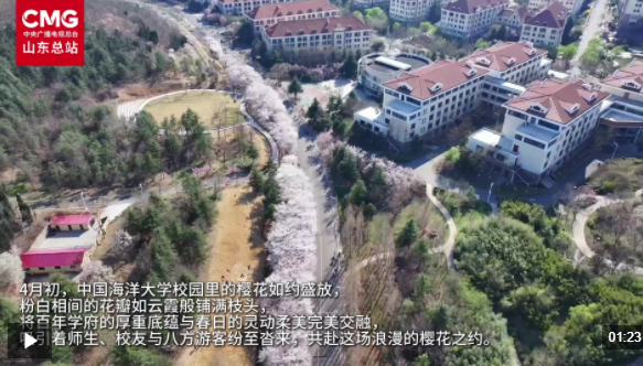 春风送暖,樱韵飘香。眼下,中国海洋大学崂山校区的樱花进入盛花期,校园里繁花满枝,成为春日里一道靓丽的风景,吸引着不少人共赴浪漫春日之约。漫步中国海洋大学崂山校区的樱花大道,粉白花朵缀满枝头,花枝交错,织就了一条浪漫的樱花长廊。微风轻拂,花瓣随风飘落,宛若走进童话秘境。樱花大道2006年建成,全长约一千米,贯穿校园南北,道路两侧种植600余株早樱与晚樱,每年四月至五月樱花盛放季,是师生赏花拍照、驻足休憩的热门打卡点。翟羽佳中国海洋大学研一学生我上一次来青岛是在复试的时候,刚好是3月底的时候,当时就是满怀着期待,想来看到樱花大道上的樱花,但是因为那个时候是3月底,所以说樱花暂时没有开,当时就留有了一点点小...