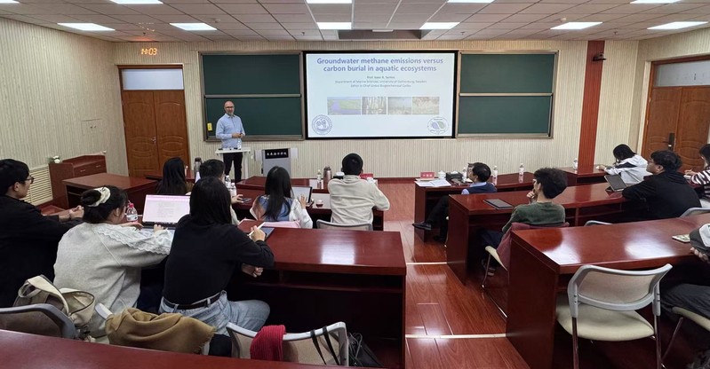 本站讯11月11日,应未来海洋学院院长李建平教授、学院导师许博超教授联合邀请,美国地球物理学会(AGU)会士、瑞典哥德堡大学Isaac Santos教授做客“未来海洋讲坛”,作了题为“Groundwater methane emissions versus carbon burial in aquatic ecosystems”(地下水甲烷排放与水生生态系统中碳埋藏的对比研究)的学术讲座。讲座由许博超教授主持,未来海洋学院学员和化学化工学院师生现场听取讲座。Isaac Santos教授介绍了甲烷作为一种重要的温室气体,在大气中的浓度显著升高,且受到多种驱动要素的影响。全球水生生态系统是温室气体的重要归宿之一,不同的水生生态系统因具有不同的甲烷排放通量而对全球气候具有重要影响。他指出,通过对比湖...