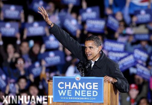 11月3日晚,在美国弗吉尼亚州的马纳萨斯,民主党总统候选人奥巴马参加竞选集会。当晚,奥