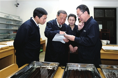 专家们在探讨工作,他们面前的托盘中摆放的就是战国竹简。图为陈列的战国竹简(新华社)。 &n
