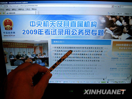 资料图片: 10月15日,网民在网上查询国家公务员考试报名的有关信息。当日,