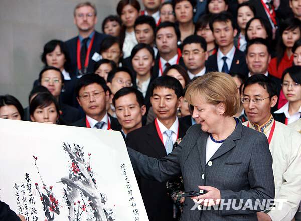 10月14日,德国总理默克尔在首都柏林的总理府接受中国青年代表