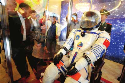 昨天,工作人员开始安装保护“神七”航天员翟志刚舱内航天服的玻璃罩。