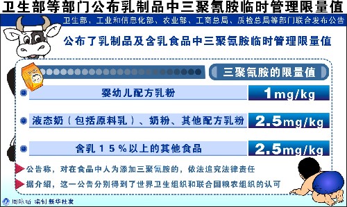 图表:卫生部等部门公布乳制品中三聚氰胺临时管理限量值 新华社北京10月13日电 记者13日