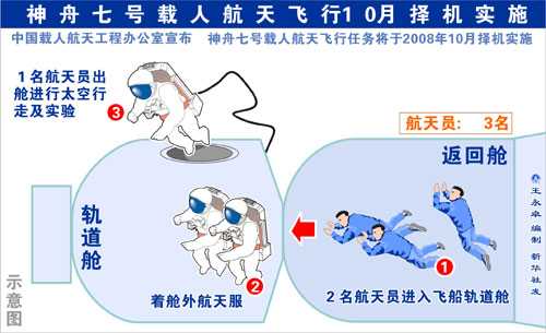 宇航员航行活动示意图中国载人航天工程新闻发言人16日向新华社记者透露,我国自主研制的舱外航天服,经过