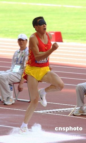 9月12日上午,北京残奥会男子三级跳远F11级的决赛中,我国著