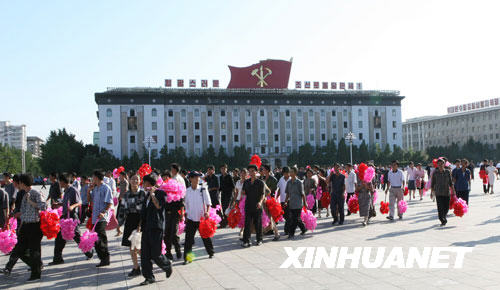 9月2日,朝鲜民众在首都平壤的金日成广场为国庆游行做准备。 新华网北京9月8日电