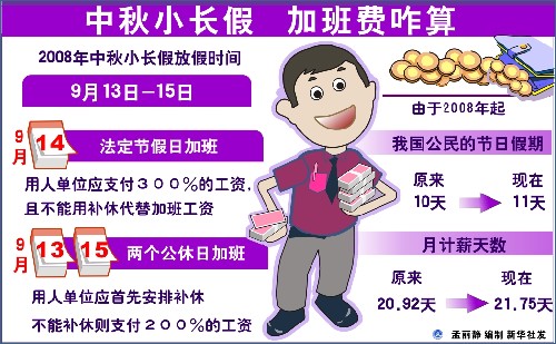 劳动部门:中秋节当天加班应支付300%加班工资