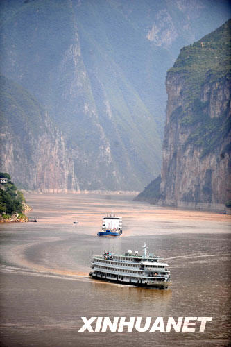 船只从长江瞿塘峡夔门经过(8月23日摄)。