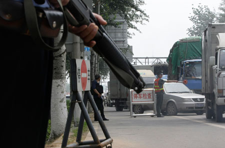 7月10日,北京警方荷枪实弹把守主要进京通道。 &n