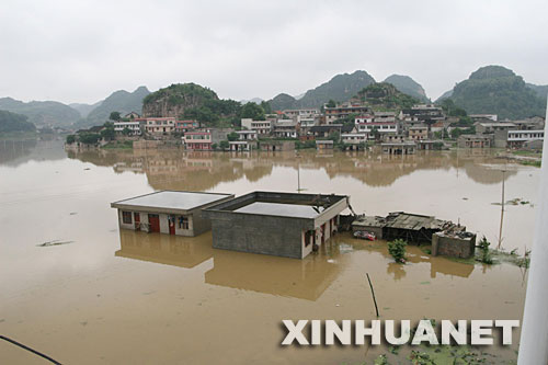 5月27日,安顺市郊区一个村寨的房屋被淹。新华社发(刘继灵 摄)