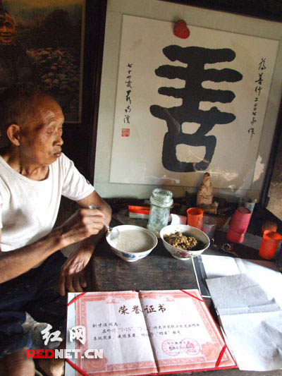 (老人吃的稀饭、腌菜,对灾民却很慷慨)何永康/摄影