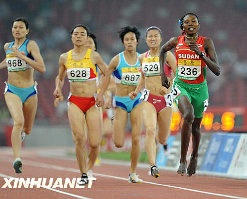 5月25日,苏丹选手巴希特(右)在女子800米决赛中赤脚“上阵