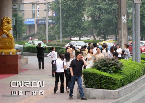 青川6.4级余震-成都震感强烈-居民纷纷来到街头摄影王菲 新华网快讯 据四川省