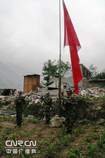 汶川地震废墟上升起特殊国旗