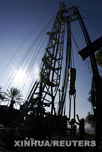 10月24日,石油工人在美国洛杉矶一口油井旁作业总部设在瑞士格朗的世界自然基金会24日发表《2006