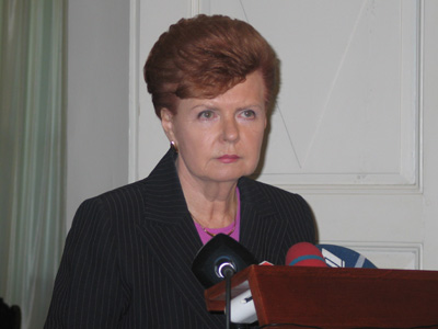 9月16日,拉脱维亚总统瓦伊拉·维基耶-弗赖贝加在里加举行的紧急