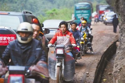 4月22日上午,芦山县通往宝兴县道路因塌方时断时续,当地和外地
