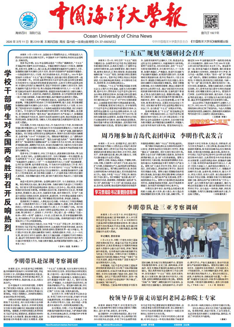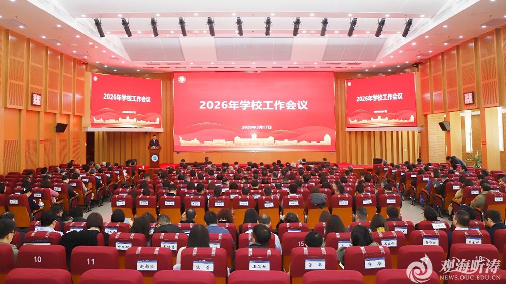 本站讯3月17日,2026年学校工作会议在崂山校区海洋科技楼召开。党委书记李明主持会议并讲话,对做好全年工作提出要求。校长张峻峰作工作报告,部署2026年学校重点工作。李明指出,2026年是学校全面贯彻落实习近平总书记重要回信精神、推动“十五五”和新一轮“双一流”建设开局起步、加快建设特色显著的世界一流大学的重要一年。全校上下要坚持以习近平新时代中国特色社会主义思想为指导,深入贯彻党的二十大和二十届历次全会精神...