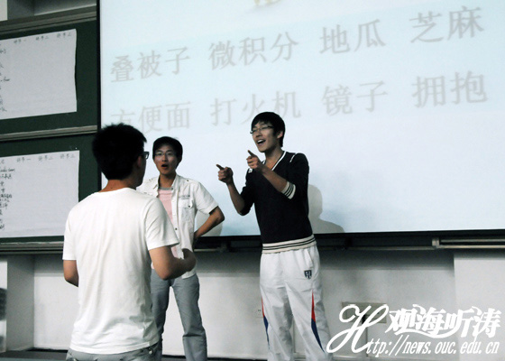 5月19日晚,经济学院学生会学权委和新闻部联合主办的“宿舍对对碰”于海大崂山校区举办。来自全校共十八个宿舍队伍参加比赛。在比赛开始前的自我介绍环节中,在场所有队伍都在商量如何“放狠话”,主持人数次维持秩序均无效, 而最终的商量结果也让现场气氛数度爆棚,“wonder four”大声喊出宣言:“watch out,我们要进攻了”,“嘉德威”更是直接宣布“我们就是来拿第一的”,“迅雷不及掩耳盗铃儿响叮当仁不让”则凭借其队名让人眼前一亮。