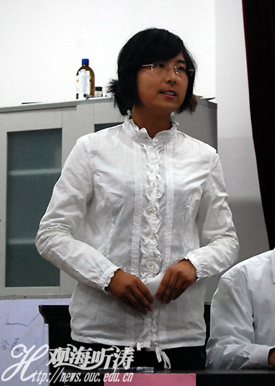 最后,由材料2008级优秀辩手王煜青点评本场辩论赛。他指出本场辩题应基于现实,而双方在这一点上稍有欠缺。同时他还教导场上辩手,在事例选择上要注意简洁明了,选择有说服力的事例。