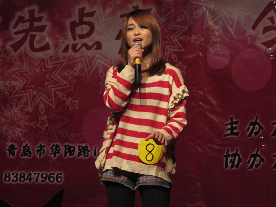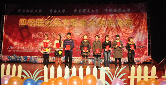 本站讯 12月4日晚,第一届“琴岛之音——驻青四高校联谊英文歌曲大赛总决赛”在青岛科技大学四方校区礼堂震撼上演。此次活动由中国海洋大学、青岛科技大学、青岛大学、青岛理工大学四校英语协会联合举办,旨在增进青岛各高校学子的交流,加深彼此的友谊。海大外国语学院的教师代表和学生代表分别作为评委和嘉宾出席了本次活动,最终海大2011级英语专业吴雅兰同学凭借其优美动听的歌声夺得冠军。