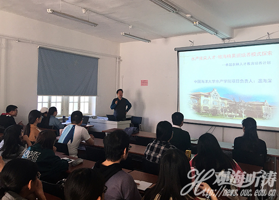 本站讯 5月10日下午,水产学院“牧海菁英班”遴选说明会和研究生推免政策宣讲会在鱼山校区水产学院办公楼举行。水产学院副院长温海深、学院研究生教学秘书张文东出席会议,水产学院2016级42名本科生参加,会议由水产学院党委副书记王伟莉主持。