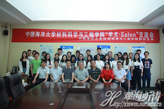 本站讯 6月21日上午,由中国海洋大学材料科学与工程学院团委主办、材料科学与工程学院研究生会承办的材料科学与工程学院“学术·Salon”活动在材料学院举行。材料学院院长王昕、副院长柳伟、王玮老师、黄明华老师、刘爽老师、王焕磊老师、赵明岗老师和高荣杰老师作为评委出席本次活动。