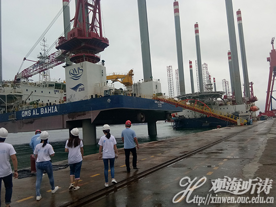 中午稍作休整之后,队员们按照公司的要求办理相关的参观手续,戴好安全帽参观公司。整个公司分为三大块:办公楼、生产车间和海岸设备组装区。首站是生产车间,它颠覆了我们对传统车间的认知;接着队员们去到近海的建造区参观,了解学习到诸如“海上钻井平台”的设备。