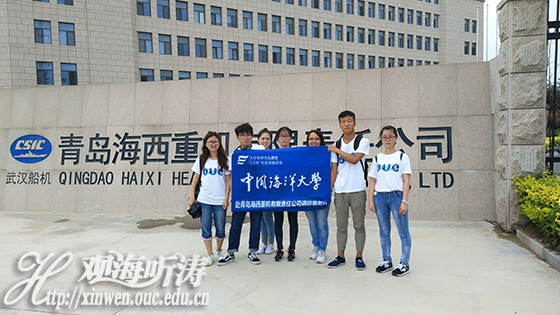 本站讯 7月9日至11日,来自中国海洋大学水产学院的三下乡调研队伍——中国海洋大学赴青岛海西重机有限责任公司调研服务队分别在青岛海西重机有限责任公司和武船重工开展以“青岛海西重机有限责任公司新旧动能转化情况的研究”为主题的为期三天的调研。