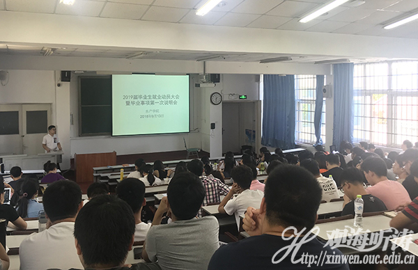 本站讯 9月13日,水产学院2019届本科生就业动员大会暨毕业事项第一次集中说明会在鱼山校区新教学楼召开,学院就业辅导员吕朋、2015级本科生带级辅导员刘甜、2019届本科生参加大会。