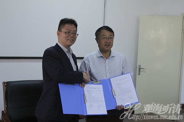 本站讯 9月17日上午,中国海洋大学水产学院—台湾中兴大学生命科学院合作协议签约仪式在鱼山校区铭史楼举行。台湾中兴大学生命科学院院长陈全木一行12人,水产学院院长李琪、水产科学国家级实验教学示范中心副主任郑小东、学院办公室主任井爱国参加签约仪式。仪式由水产学院院长助理李景玉主持。