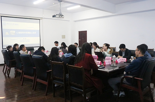 本站讯 10月29日下午,管理学院“开讲吧·导员”第二期专题研讨会召开。会议邀请了青岛市高校专职心理教师、中国心理学会注册心理师、中国海洋大学心理健康教育与咨询中心专职教师黄凯开展专题研讨。管理学院学生工作办公室主任、团委书记祁华出席会议,会议由学工办副主任李勤主持。